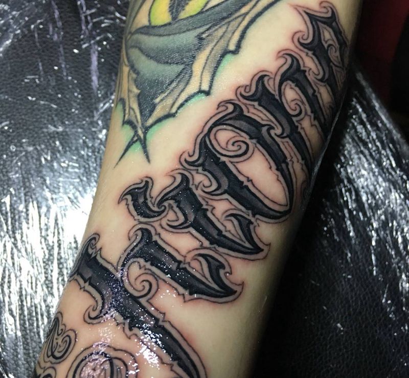 当前位置: 首页 >云南省昆明市纹身店-KD TATTOO Studio纹身图案>奇卡诺手写字体纹身图片_成品手稿欧美字符匪帮奇卡诺花体字纹身图案