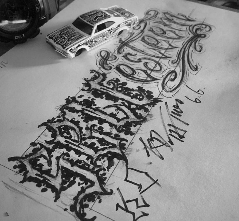 当前位置: 首页 >云南省昆明市纹身店-KD TATTOO Studio纹身图案>奇卡诺手写字体纹身图片_成品手稿欧美字符花体字奇卡诺匪帮纹身图案