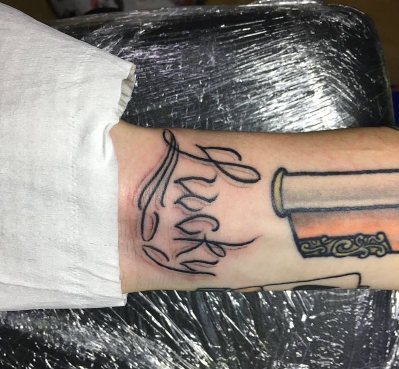 当前位置: 首页 >云南省昆明市纹身店-KD TATTOO Studio纹身图案>今天的图纹身图片_成品手臂欧美字符花体字匪帮奇卡诺恶魔纹身图案