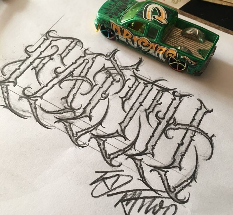 当前位置: 首页 >云南省昆明市纹身店-KD TATTOO Studio纹身图案>奇卡诺手写字体纹身图片_成品手稿手臂欧美字符奇卡诺花体字匪气纹身图案