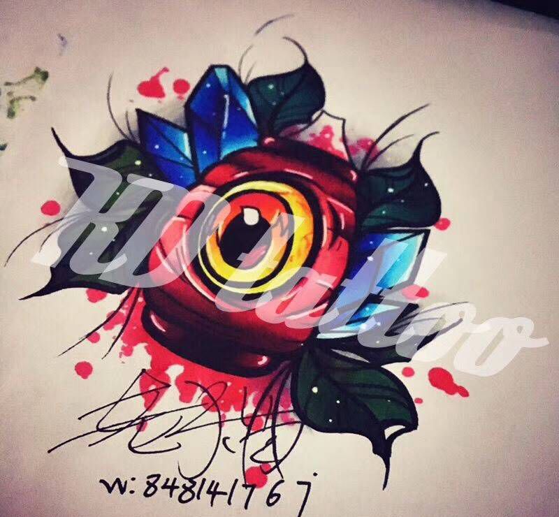 • 手背潮流时尚的玫瑰花眼睛纹身图案