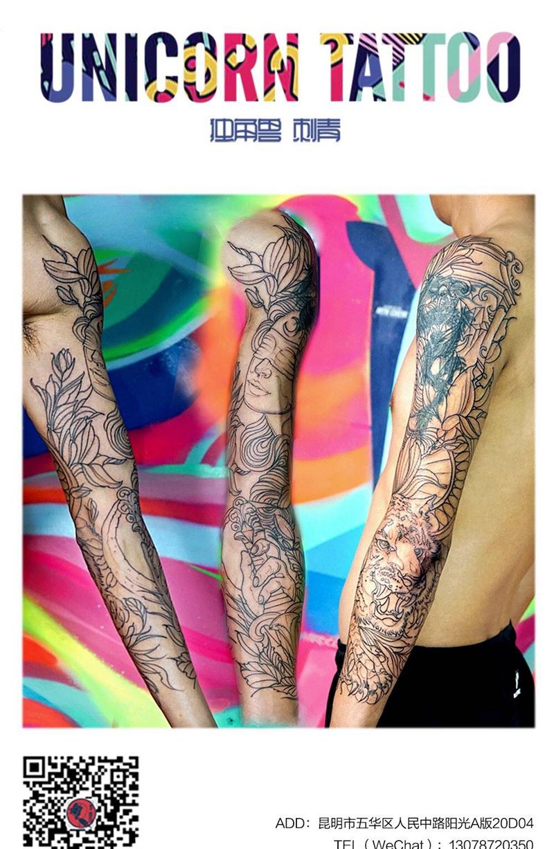 当前位置: 首页 >云南省昆明市纹身店-独角兽刺青纹身图案>花臂遮盖未完成纹身图片