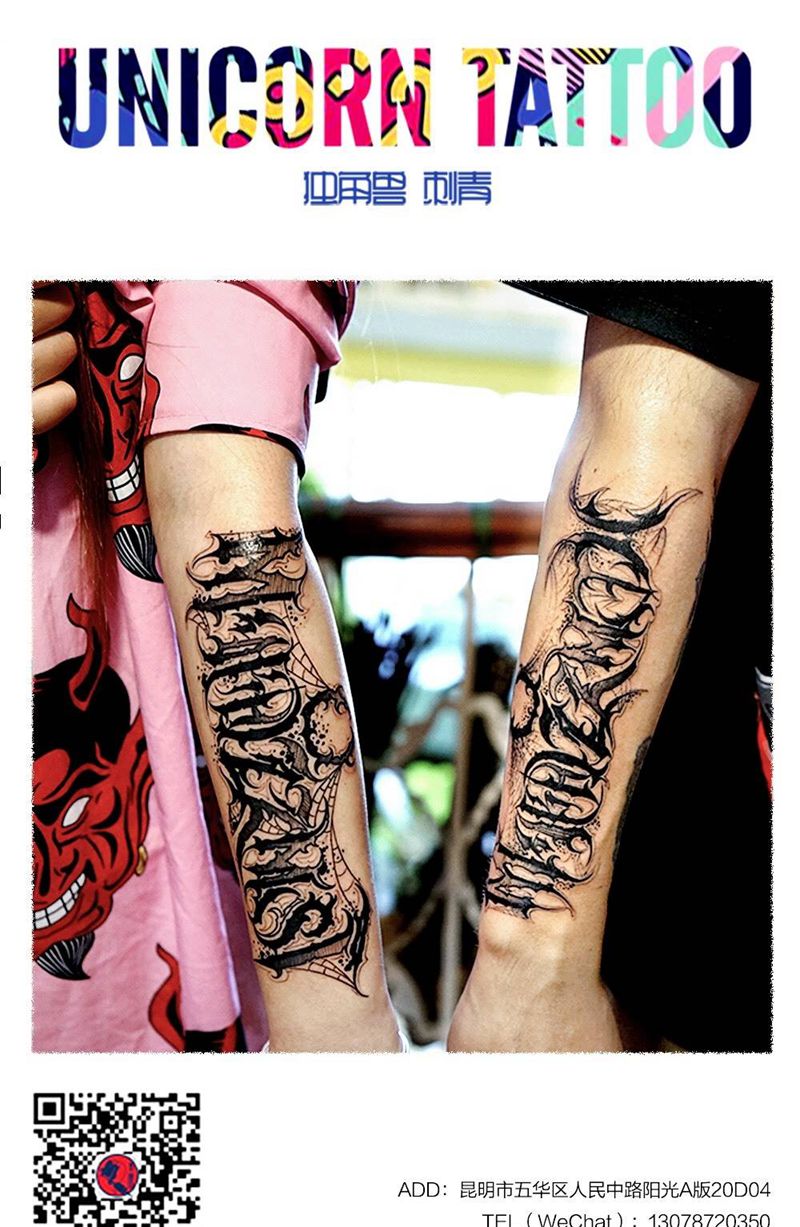 当前位置: 首页 >云南省昆明市纹身店-独角兽刺青纹身图案>兄妹花体字纹身图片