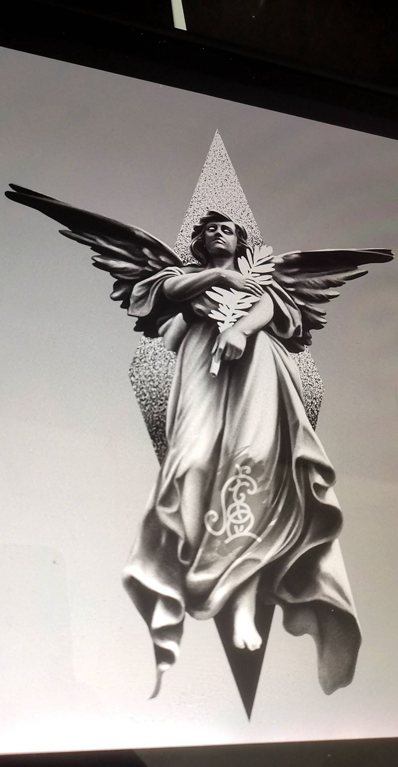 天使纹身图片_手臂手部欧美写实点刺天使写实黑灰纹身图案