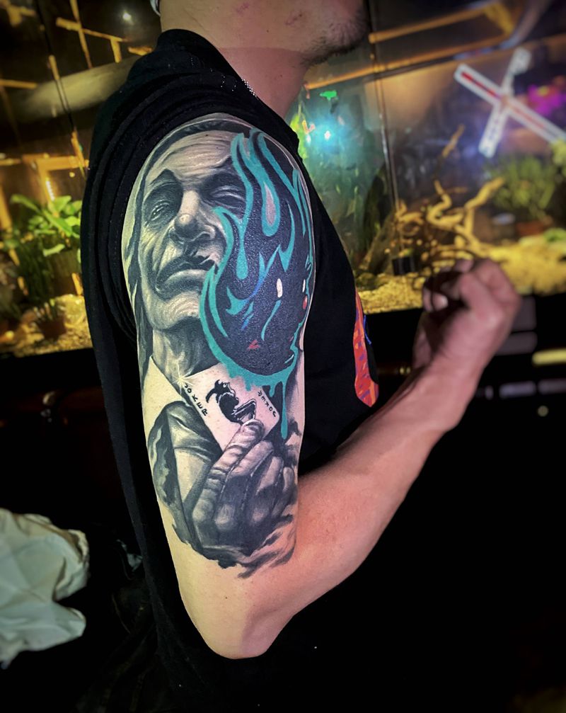 joker图腾修改恢复后纹身图片_手臂欧美写实图腾joker小丑写实纹身图案