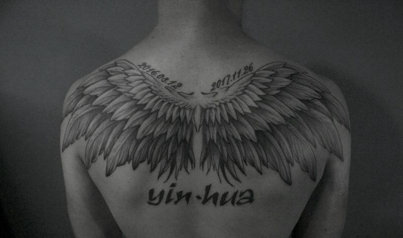 当前位置: 首页 >云南省昆明市纹身店-纹身工作室纹身图案>翅膀纹身图片_背部黑灰纹身图案