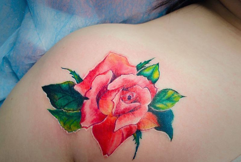 当前位置: 首页 >云南省昆明市纹身店-纹子工作室纹身图案>玫瑰盖疤纹身图片_肩部水彩纹身图案