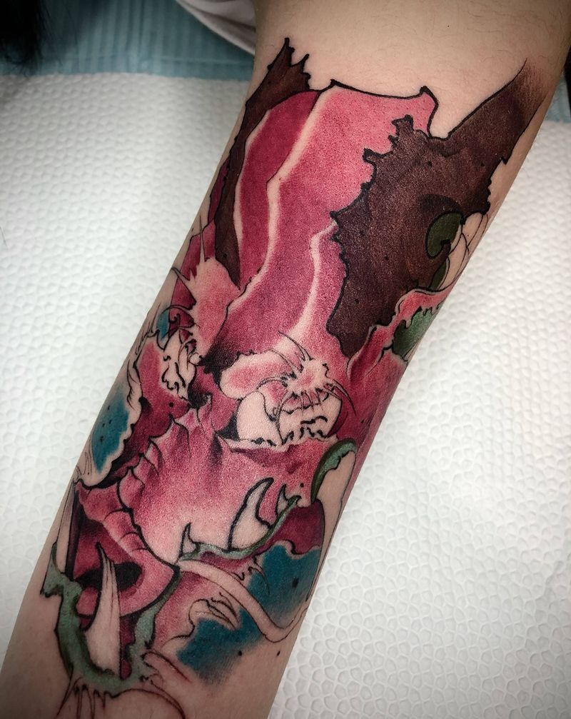 • T网红王老大花腿龙纹身图片_腿部新传统纹身图案