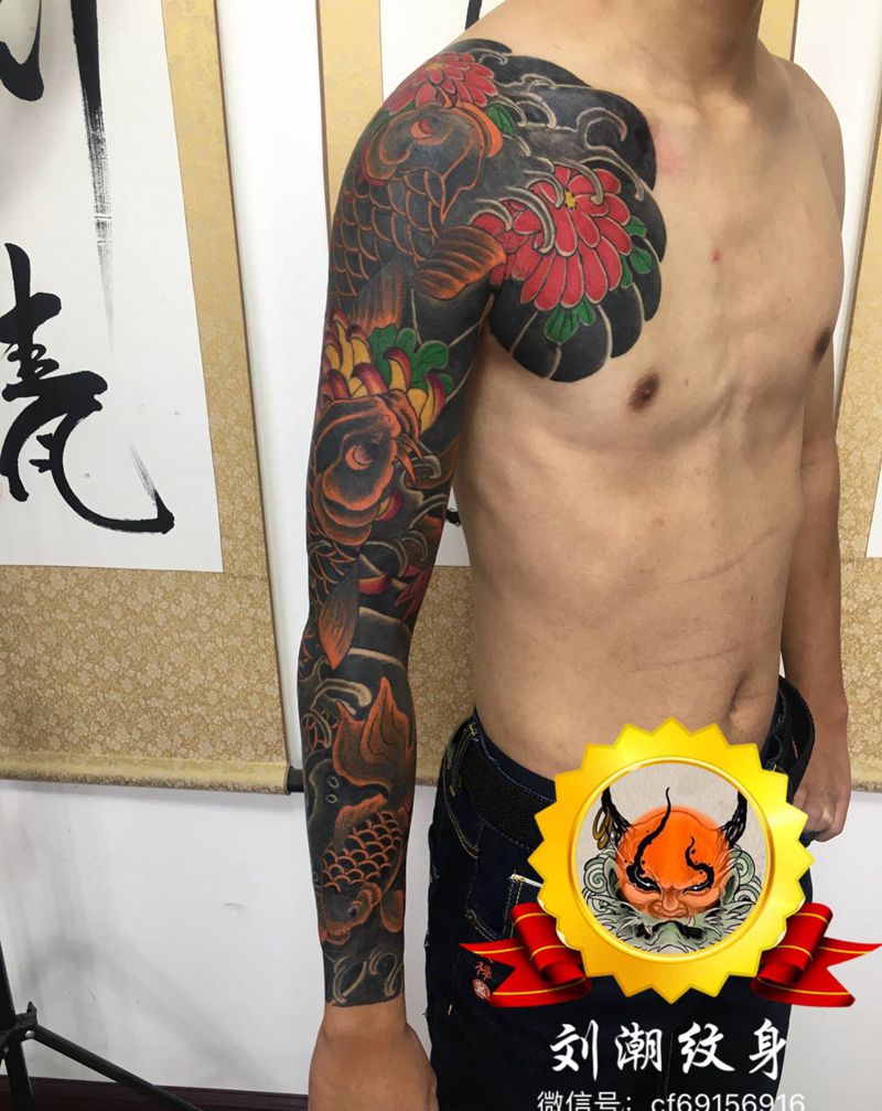 老传统菊花鲤鱼纹身图片_手部手臂老传统新传统纹身图案