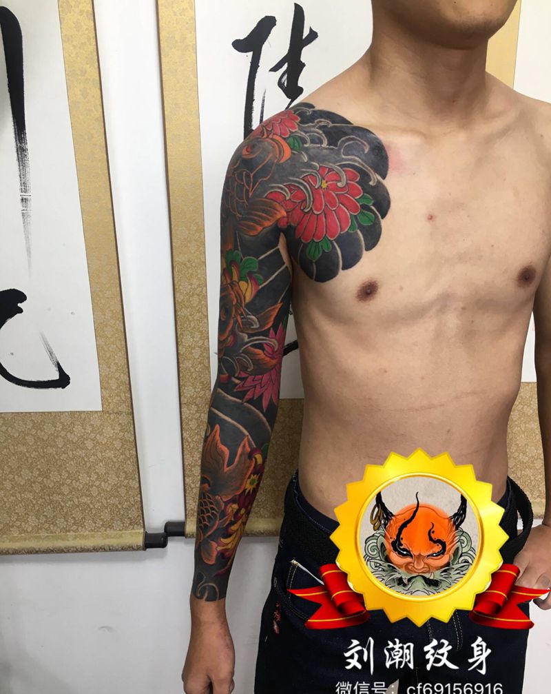 老传统菊花鲤鱼纹身图片_手部手臂老传统新传统纹身图案