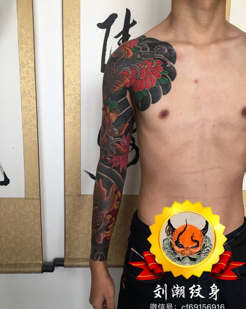 老传统菊花鲤鱼纹身图片_手部手臂老传统新传统纹身图案