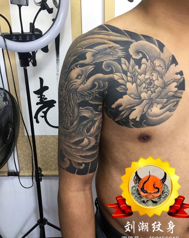半甲凤凰纹身图片_手臂手部老传统新传统纹身图案