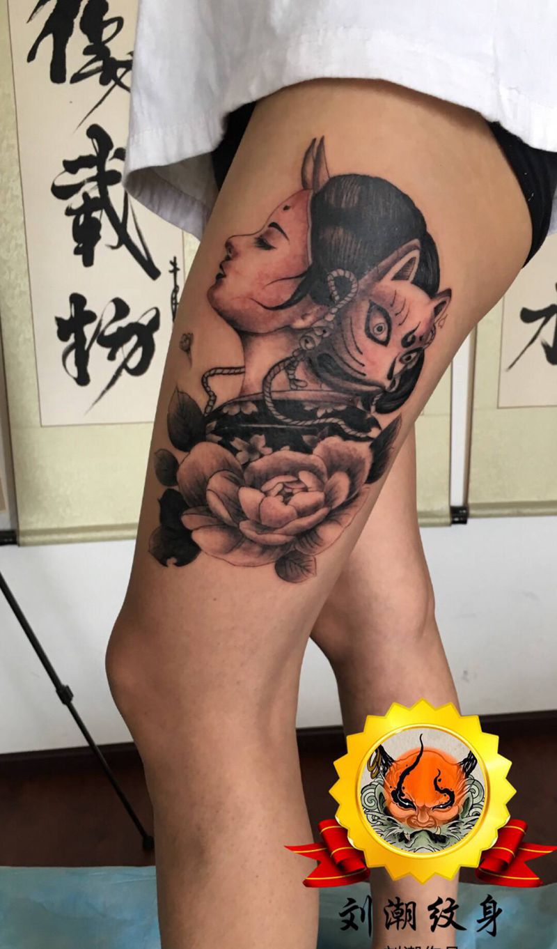 当前位置: 首页 >云南省昆明市纹身店-村夫纹身私人定制会所纹身图案>花旦纹身图片_腿部新传统老传统纹身图案