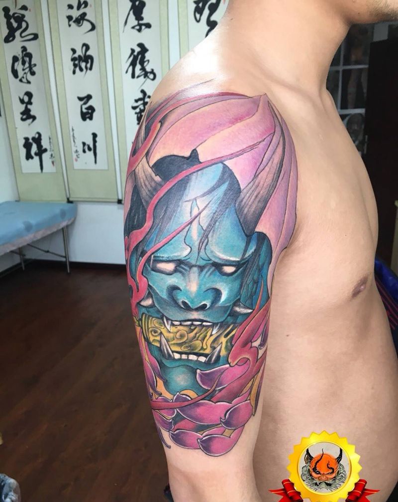 般若纹身图片_成品手臂传统鬼神纹身图案