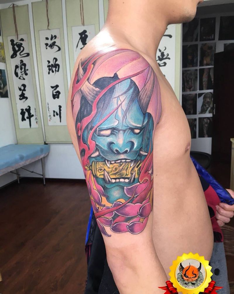 般若纹身图片_成品手臂传统鬼神纹身图案