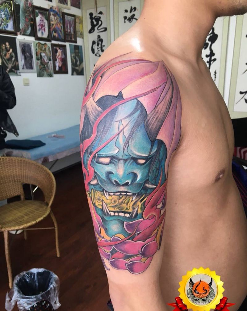 般若纹身图片_成品手臂传统鬼神纹身图案