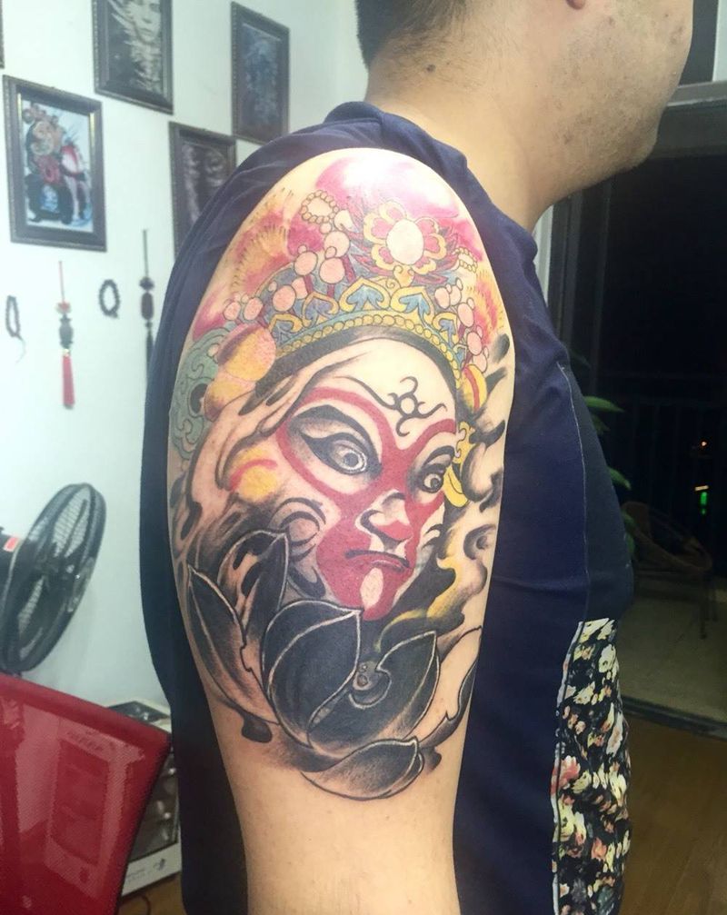 当前位置: 首页 >云南省昆明市纹身店-村夫纹身私人定制会所纹身图案>脸谱遮盖以前旧纹身纹身图片
