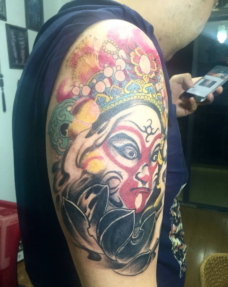 当前位置: 首页 >云南省昆明市纹身店-村夫纹身私人定制会所纹身图案>脸谱遮盖以前旧纹身纹身图片