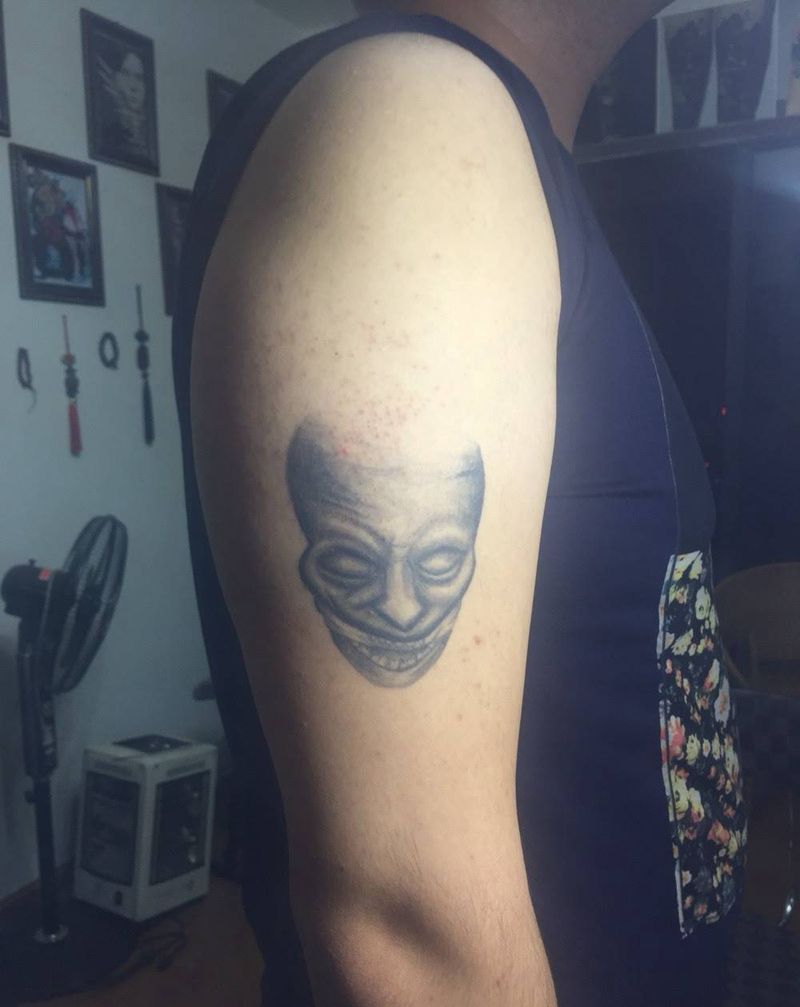 当前位置: 首页 >云南省昆明市纹身店-村夫纹身私人定制会所纹身图案>脸谱遮盖以前旧纹身纹身图片