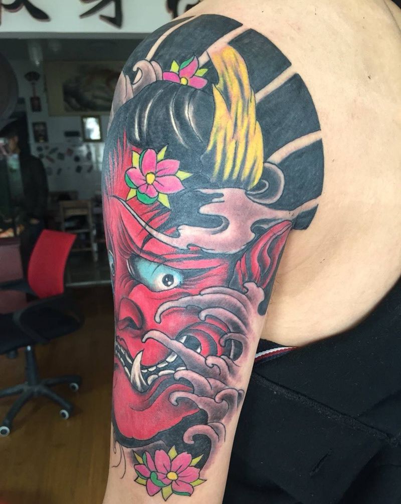 当前位置: 首页 >云南省昆明市纹身店-村夫纹身私人定制会所纹身图案>大臂般若纹身图片_成品手臂传统宗教纹身图案