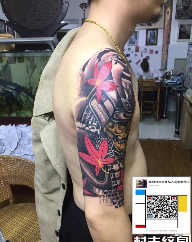 武士纹身图片_成品手臂传统宗教纹身图案