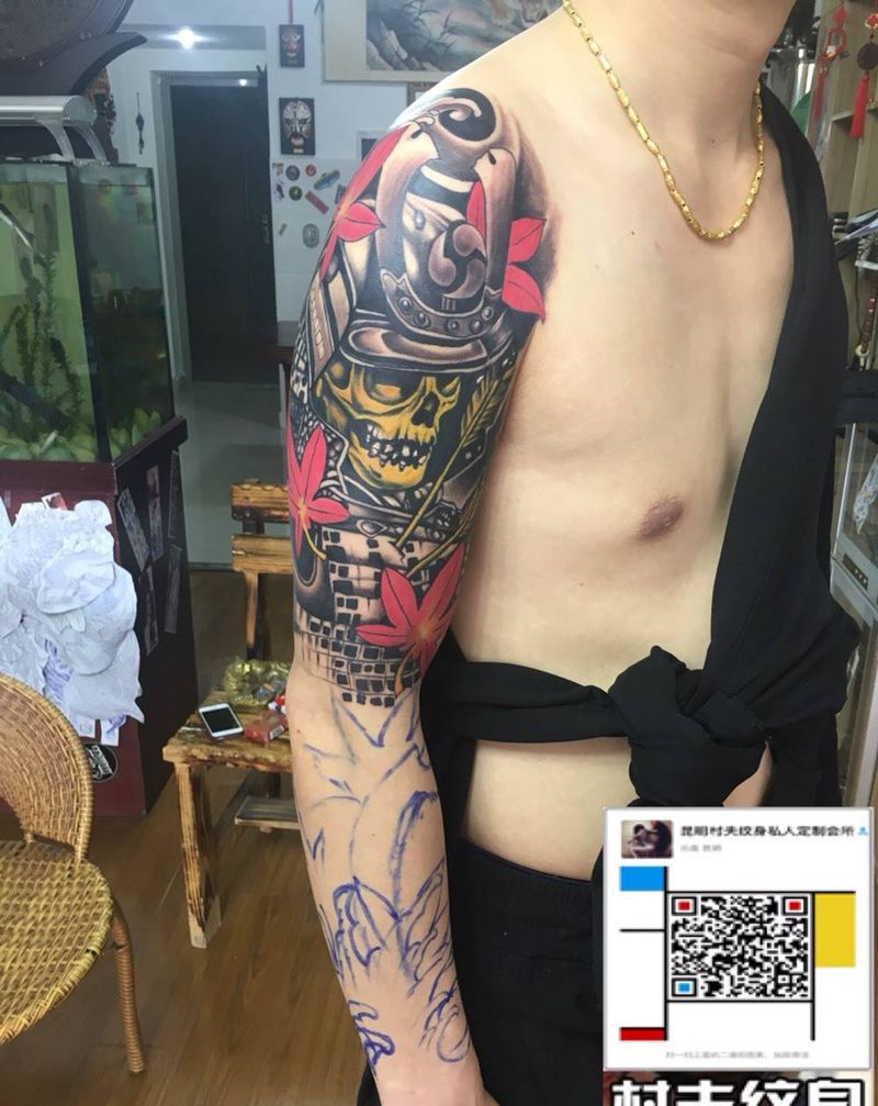 当前位置: 首页 >云南省昆明市纹身店-村夫纹身私人定制会所纹身图案>武士纹身图片_成品手臂传统宗教纹身图案