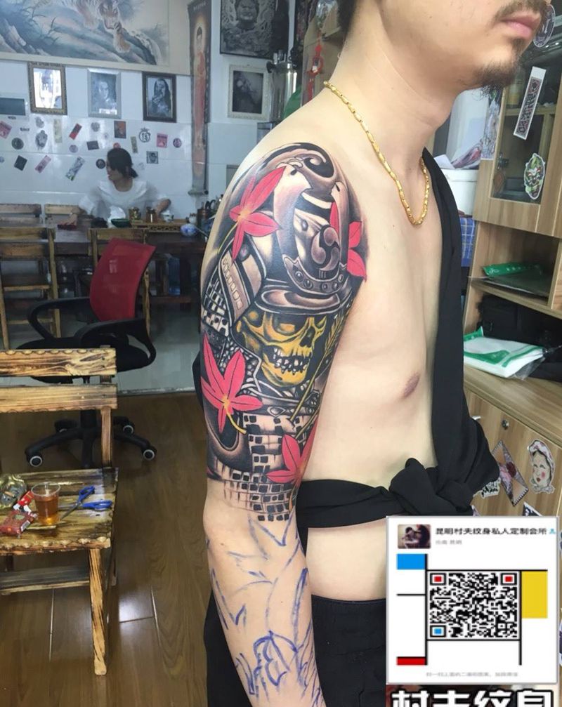 当前位置: 首页 >云南省昆明市纹身店-村夫纹身私人定制会所纹身图案>武士纹身图片_成品手臂传统宗教纹身图案
