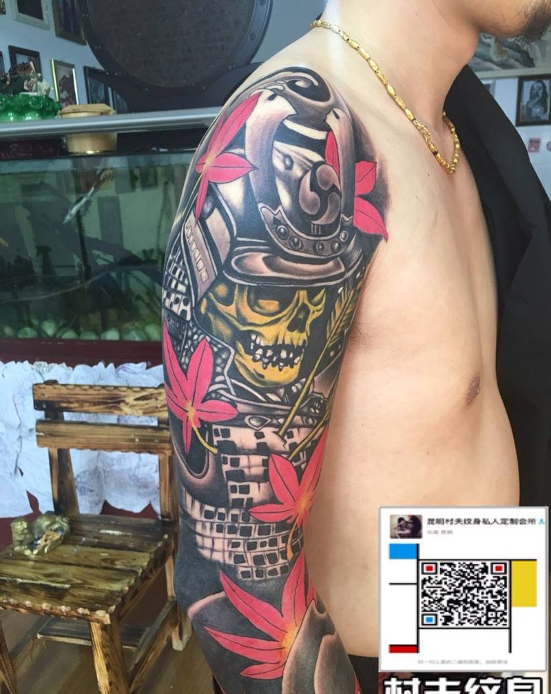 当前位置: 首页 >云南省昆明市纹身店-村夫纹身私人定制会所纹身图案>武士纹身图片_成品手臂传统宗教纹身图案