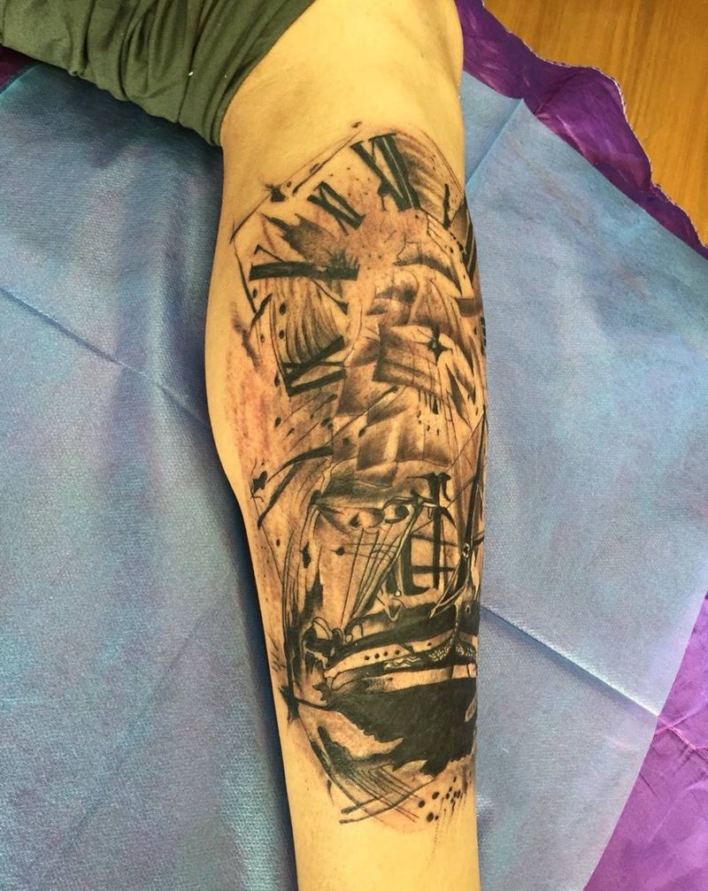 当前位置: 首页 >云南省昆明市纹身店-村夫纹身私人定制会所纹身图案>海盗船纹身图片_成品腿部欧美写实原创纹身图案