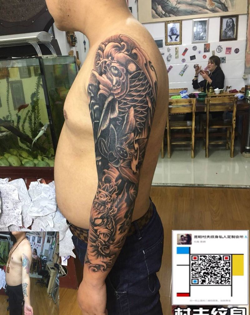 当前位置: 首页 >云南省昆明市纹身店-村夫纹身私人定制会所纹身图案>花臂遮盖纹身图片_成品手臂传统动物纹身图案
