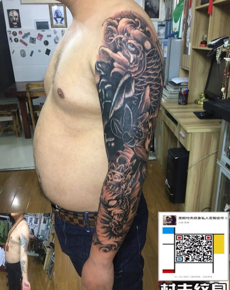 当前位置: 首页 >云南省昆明市纹身店-村夫纹身私人定制会所纹身图案>花臂遮盖纹身图片_成品手臂传统动物纹身图案