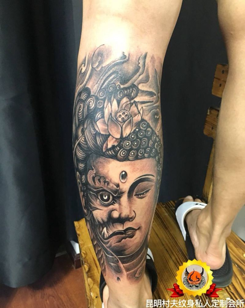 当前位置: 首页 >云南省昆明市纹身店-村夫纹身私人定制会所纹身图案>一念之间纹身图片_成品脚部传统鬼神纹身图案