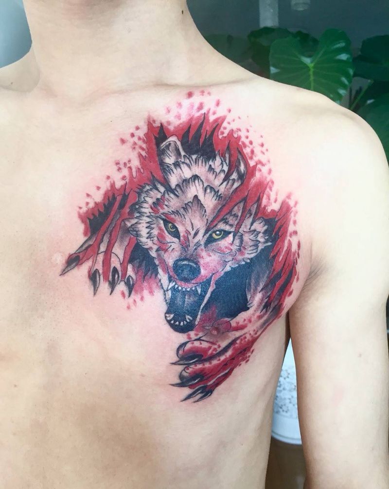 当前位置: 首页 >云南省昆明市纹身店-村夫纹身私人定制会所纹身图案>滴血狼头纹身图片_成品胸部传统动物纹身图案