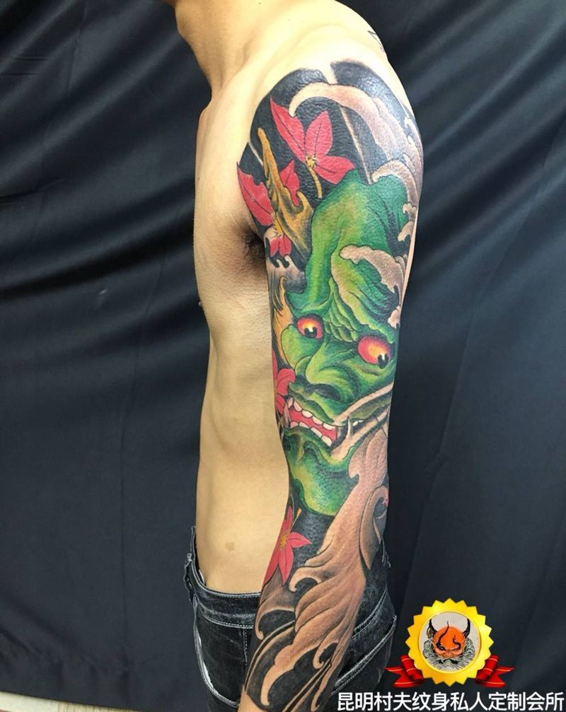 七分袖纹身图片_成品手臂传统鬼神纹身图案