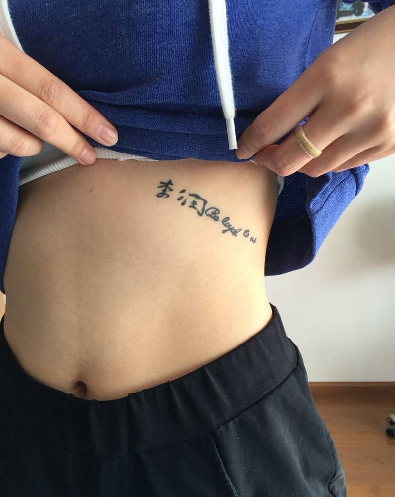 • T关于私处得爱!纹身图片_成品腹部清新字符图腾纹身图案