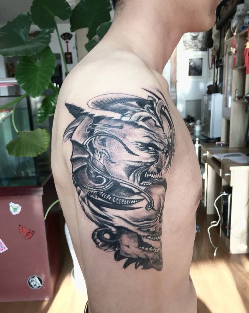 大臂骷髅纹身图片_成品手臂手部传统鬼神纹身图案