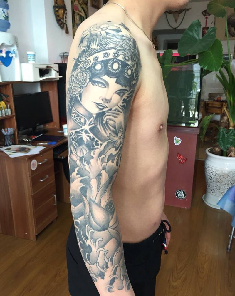一年前做的花臂纹身图片_成品手臂手部传统动物纹身图案