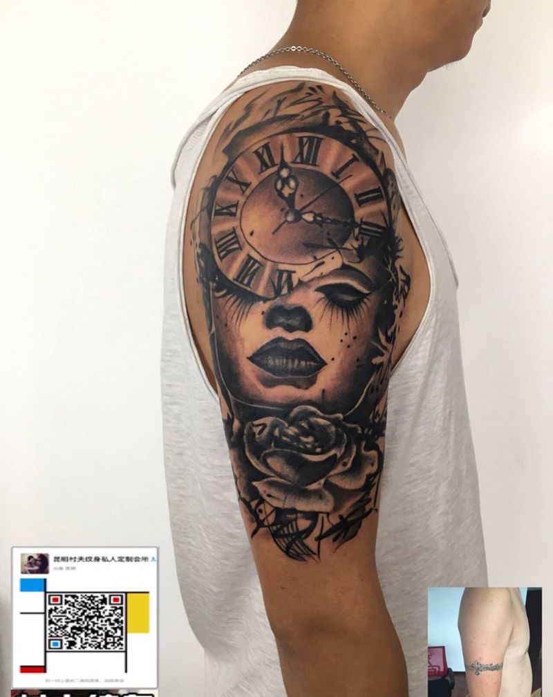当前位置: 首页 >云南省昆明市纹身店-村夫纹身私人定制会所纹身图案>遮盖纹身图片_成品手臂欧美人物纹身图案