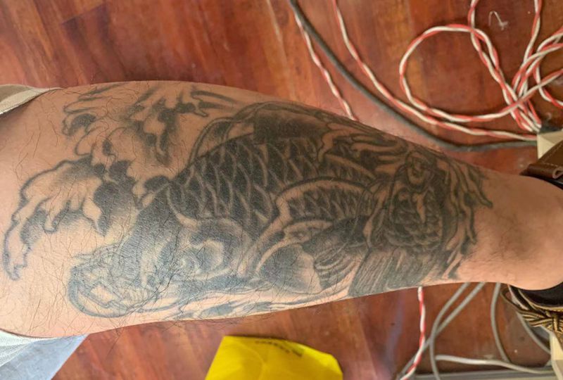 • T网红王老大花腿龙纹身图片_腿部新传统纹身图案