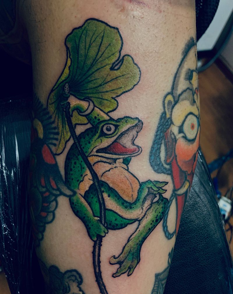 • T包小腿吹火男+阿多福纹身图片_腿部老传统新传统吹火男阿