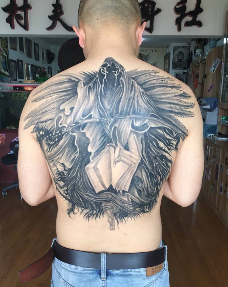 当前位置: 首页 >云南省昆明市纹身店-村夫纹身私人定制会所纹身图案>死神纹身图片_成品背部传统宗教纹身图案