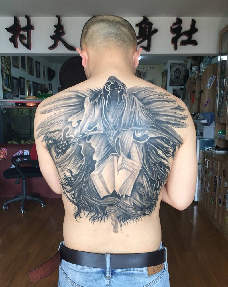当前位置: 首页 >云南省昆明市纹身店-村夫纹身私人定制会所纹身图案>死神纹身图片_成品背部传统宗教纹身图案