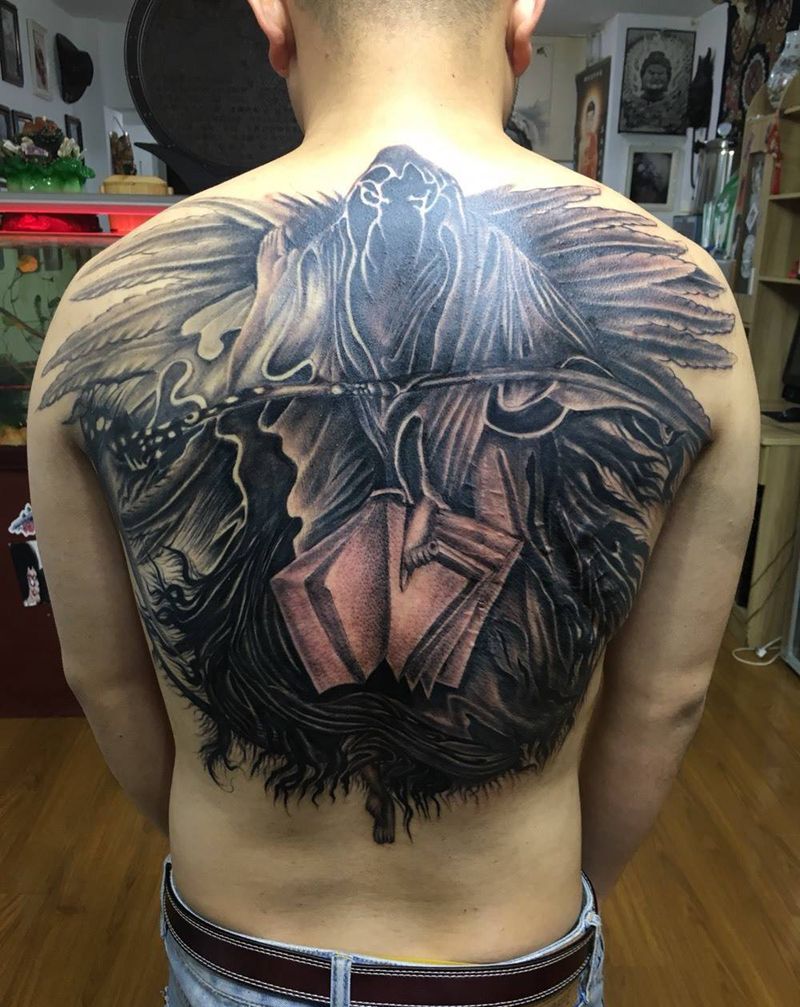 当前位置: 首页 >云南省昆明市纹身店-村夫纹身私人定制会所纹身图案>死神纹身图片_成品背部传统鬼神纹身图案