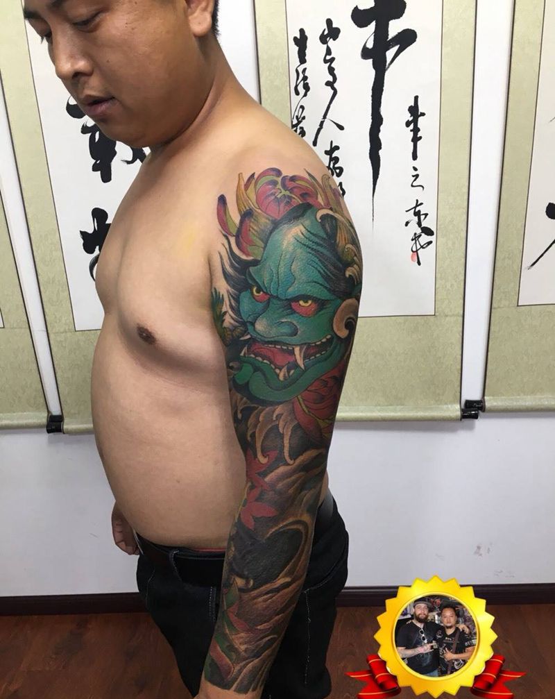 当前位置: 首页 >云南省昆明市纹身店-村夫纹身私人定制会所纹身图案>般若象神纹身图片_成品手臂传统鬼神纹身图案