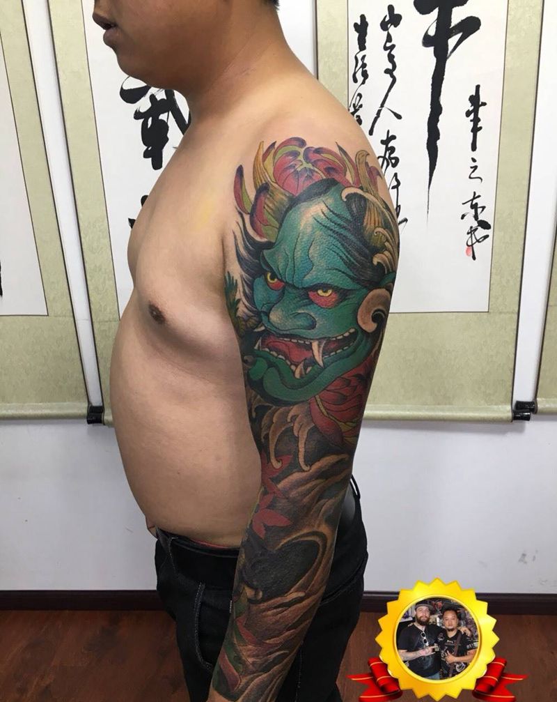 当前位置: 首页 >云南省昆明市纹身店-村夫纹身私人定制会所纹身图案>般若象神纹身图片_成品手臂传统鬼神纹身图案