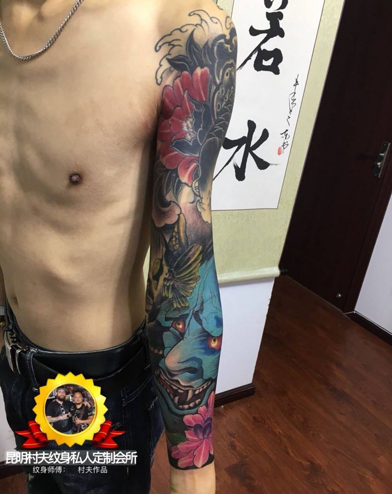 当前位置: 首页 >云南省昆明市纹身店-村夫纹身私人定制会所纹身图案>般若纹身图片_成品手臂传统鬼神纹身图案