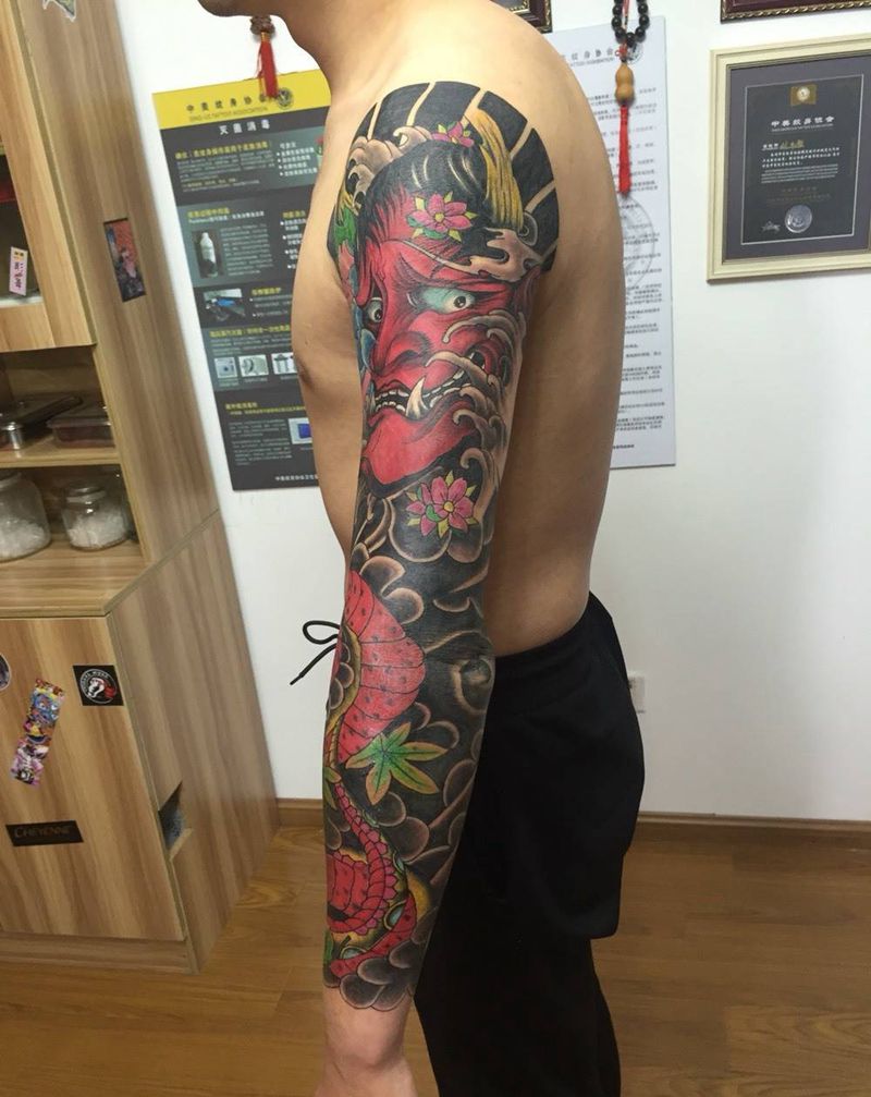 当前位置: 首页 >云南省昆明市纹身店-村夫纹身私人定制会所纹身图案>花臂纹身图片_成品手臂传统宗教纹身图案