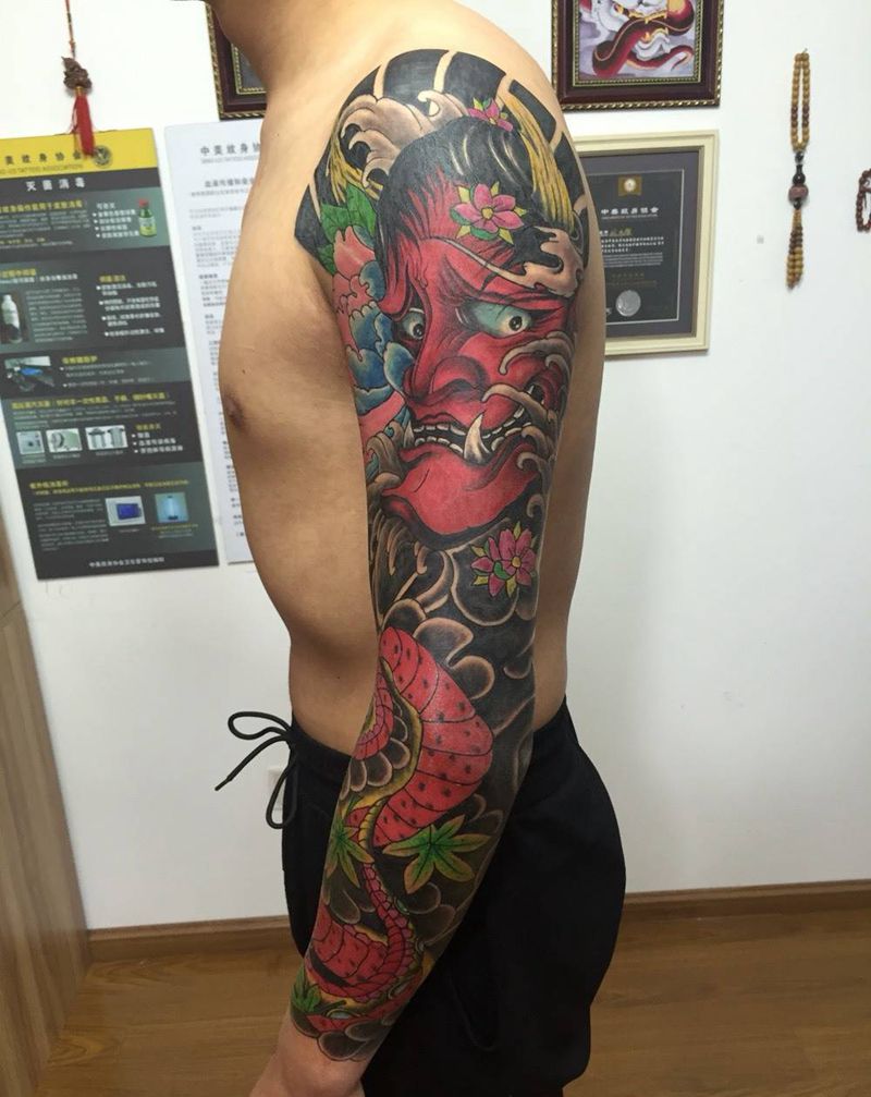 < 上一篇:般若纹身图片_成品手臂传统鬼神纹身图案 下一篇:花臂纹身图片_成品手臂颈部传统鬼神纹身图案 >