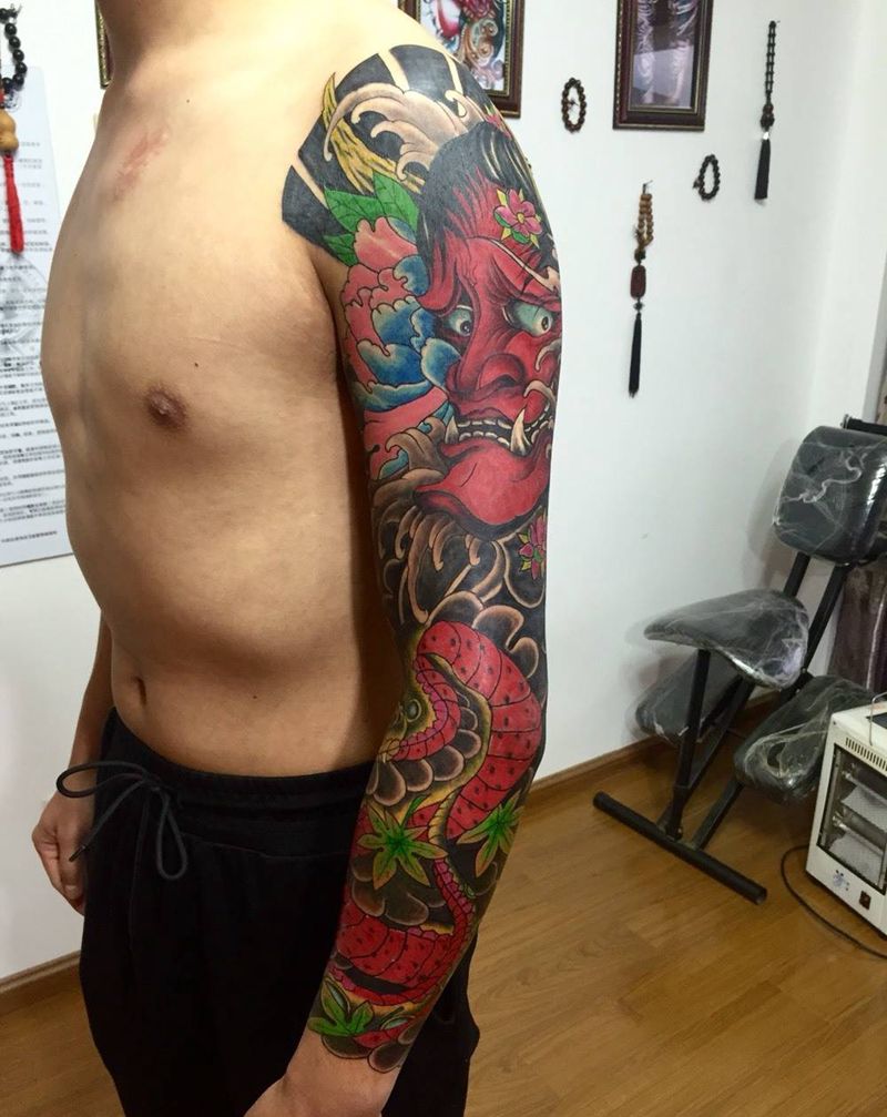 < 上一篇:般若纹身图片_成品手臂传统鬼神纹身图案 下一篇:花臂纹身图片_成品手臂颈部传统鬼神纹身图案 >