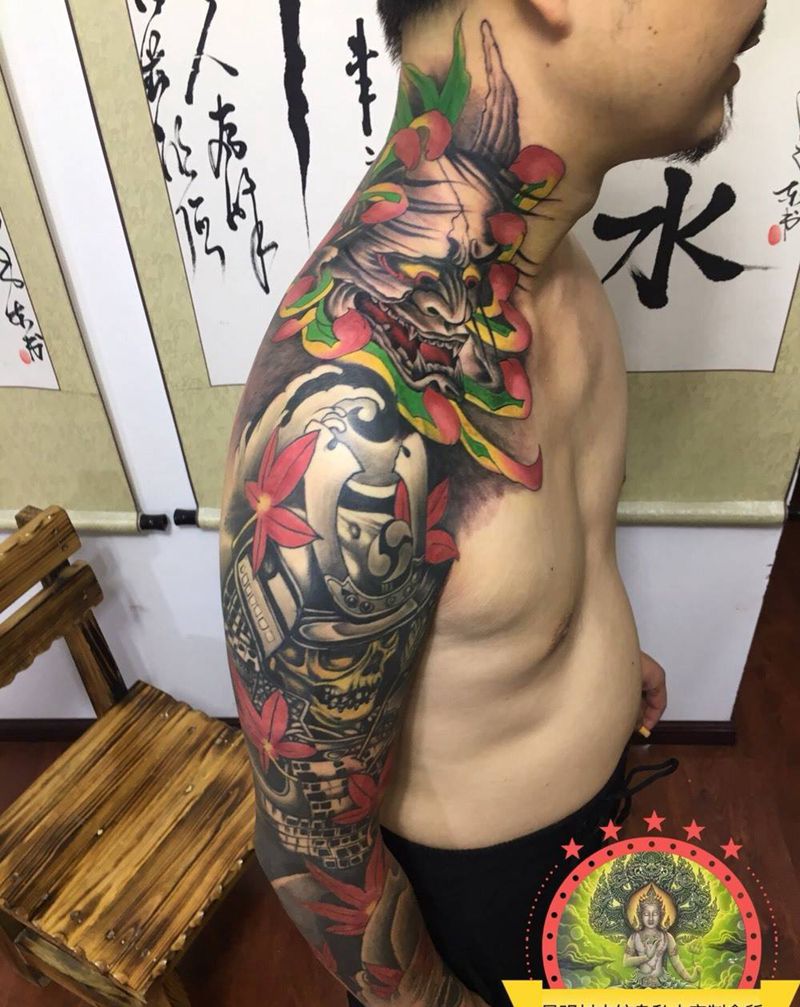 当前位置: 首页 >云南省昆明市纹身店-村夫纹身私人定制会所纹身图案>花臂纹身图片_成品手臂颈部传统鬼神纹身图案
